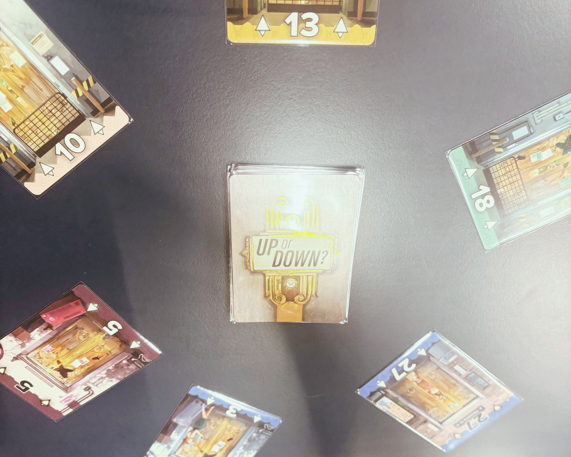 Here is the so-called “clever” idea behind Up or Down?. You take a single card from your hand—just one, because humans clearly think goblins panic when holding more—and slide it into the central ring of cards. From there, you snatch one of the neighboring cards and add it to your personal display.