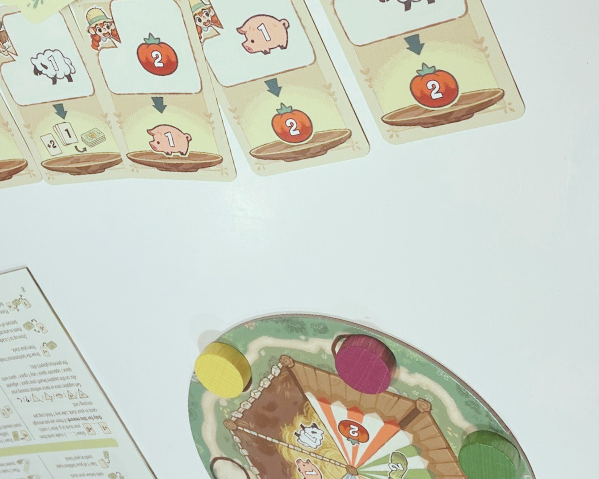 There’s no engine building here, no gentle progression. This is a race. The moment someone fulfills their entire stack of trade cards, the end begins. Everyone gets one last chance to catch up, then the game judges you harshly by leftover crop value. Sheep and pigs are worth more, because of course they are — even cardboard knows livestock outranks grain. Krizbella tried hoarding wheat and wondered why she lost. Again.