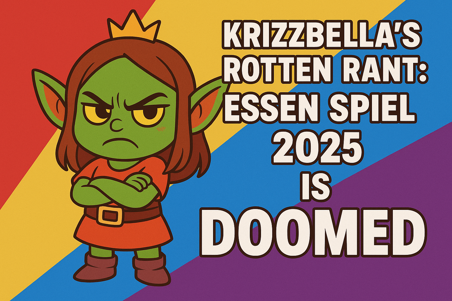 Bah! Essen Spiel 2025 approaches, and once again the humans, elves, and cube-kissers are squealing like pigs in a bakery. “Oh Krizbella, isn’t it wonderful? Four whole days of new board games!” Wonderful? WONDERFUL?! Don’t make me gag on my own bile. Let me tell you what’s actually waiting inside those shiny halls of cardboard misery.