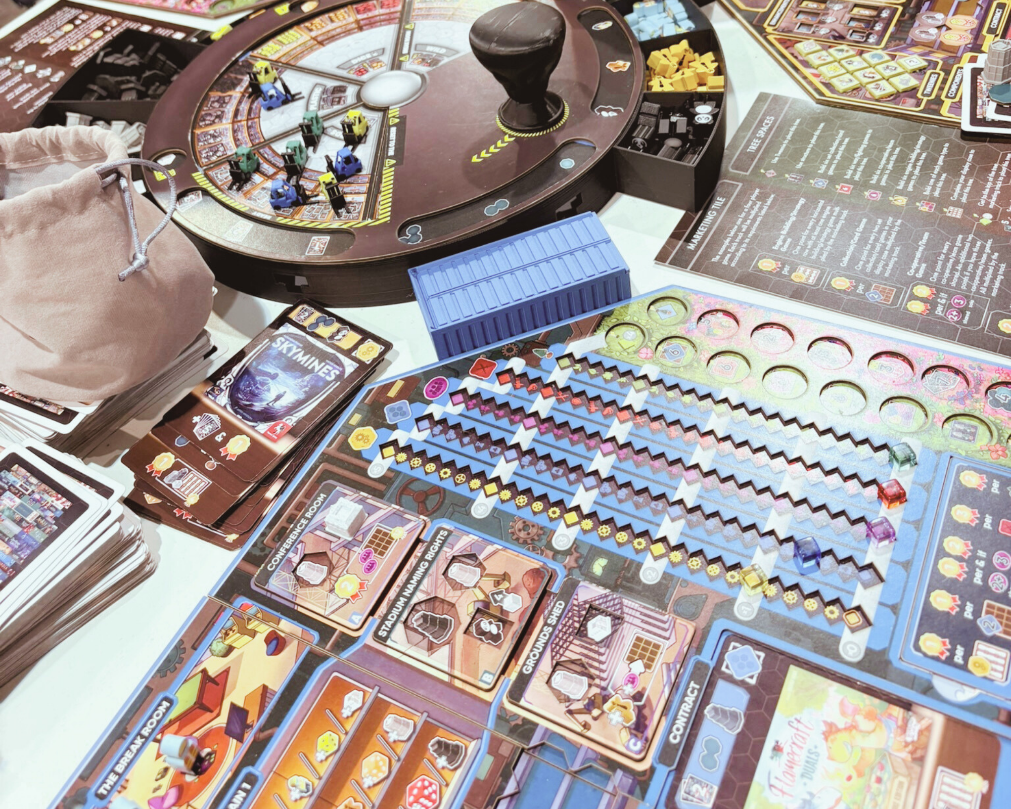 The beating heart of your empire is the rondel, your rotating production wheel that dictates what you can actually do next. You’ll move through phases of Design, Develop, Market, and Manufacture, balancing the timing of each project like it’s a spinning plate show gone wrong. The rondel’s pace can make or break your business — rush it and you’ll publish half-finished disasters; delay it and you’ll be left selling dusty prototypes. Humans call that “tough decisions.” Goblins call it “bad planning.”